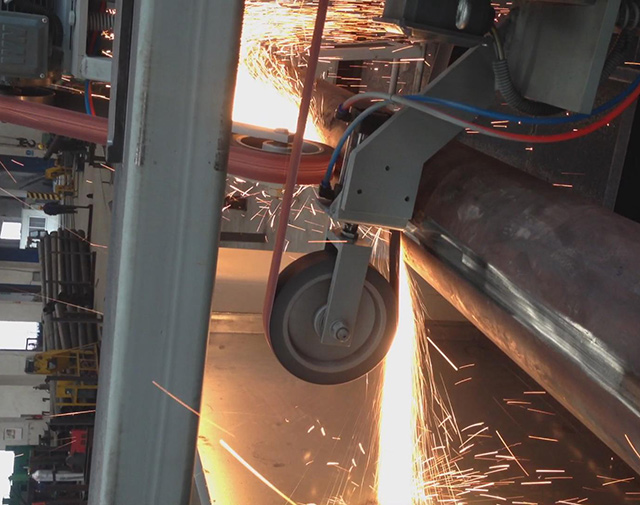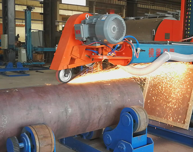 該設備主要用于大、中型焊接鋼管、罐體焊縫的磨削加工。適合內外直焊縫、環焊縫打磨拋光。生產效率高,勞動強度低,焊縫打磨效果好,且不傷管材本體,是打磨焊接鋼管管端直焊縫的理想設備。