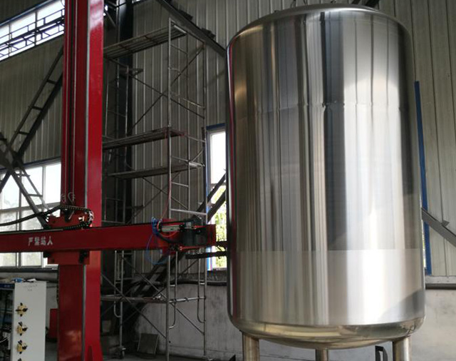 專用于各類工業罐體內、外表面及縱、環焊縫粗磨、精磨、拉絲及鏡面拋光的機床?砂匆笤O計不同形式的磨頭,利用砂帶、千葉輪、纖維輪、麻輪等對各種不銹鋼罐體、壓力容器等進行磨削拋光。
